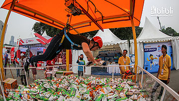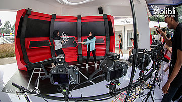 Dua Pengunjung mencoba video 180 yang di sediakan di booth Djarum