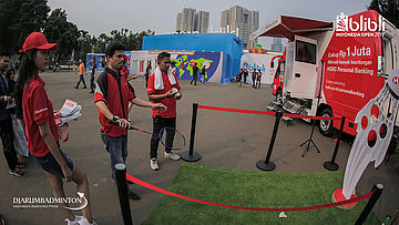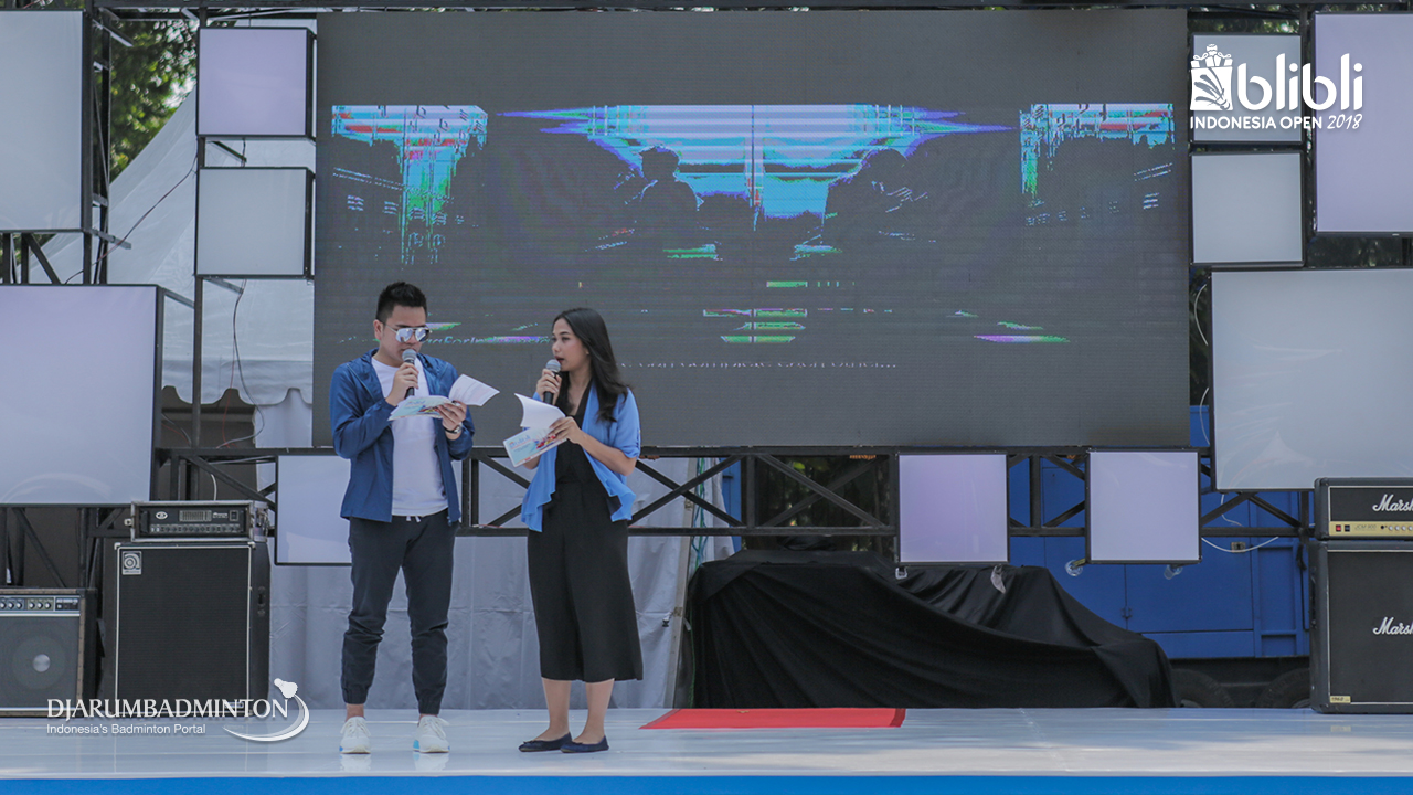 MC meramaikan suasana di luar arena BLIBLI Indonesia Open 2018