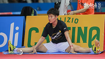 ZHENG Si Wei (China) sedang melakukan peregangan