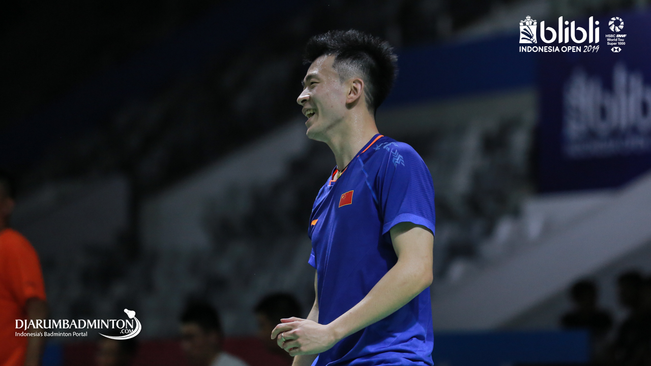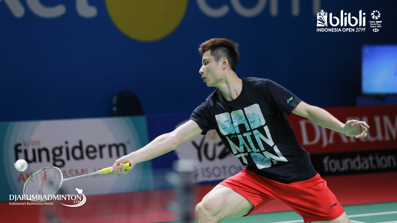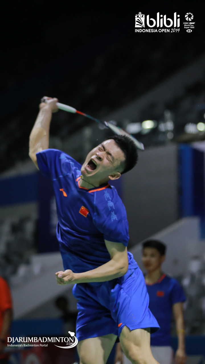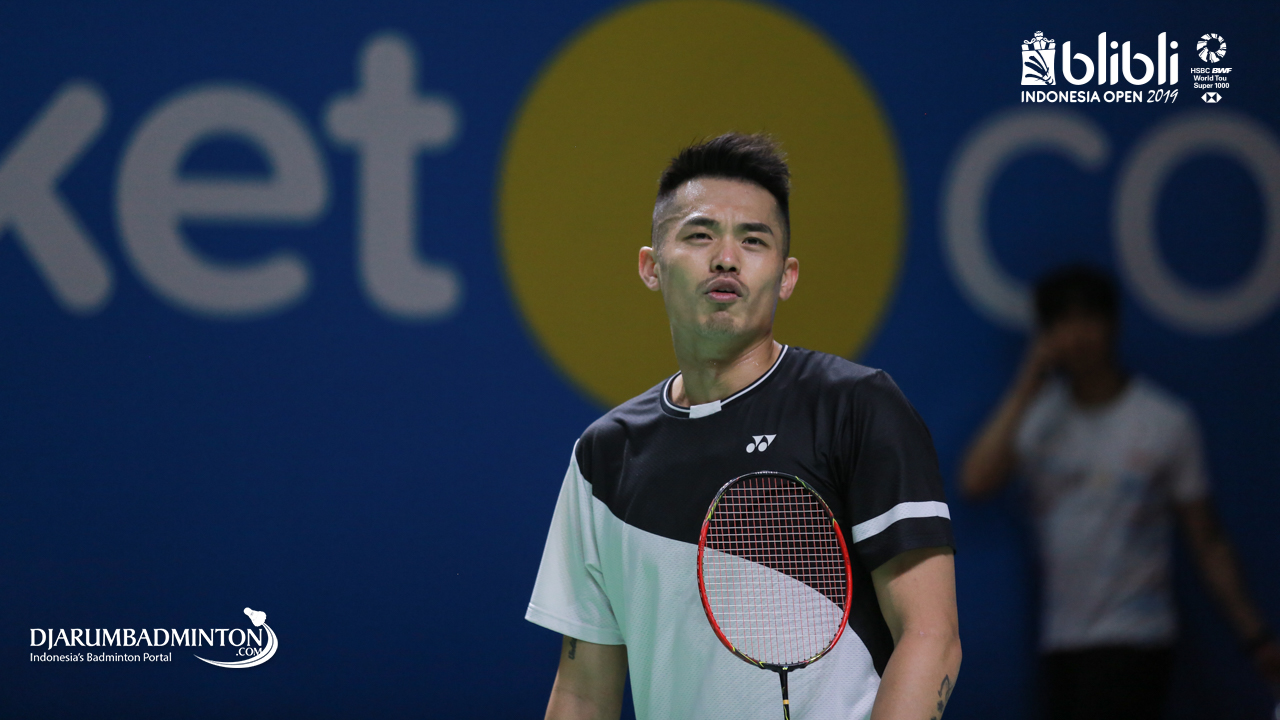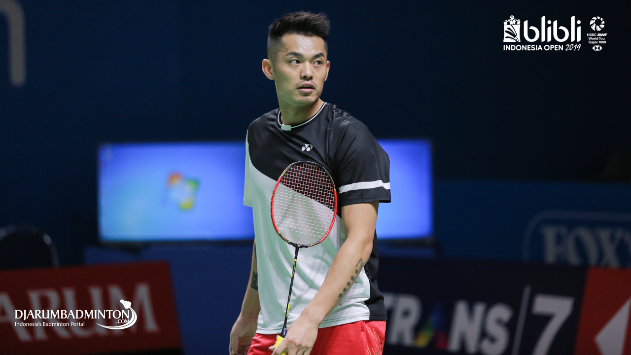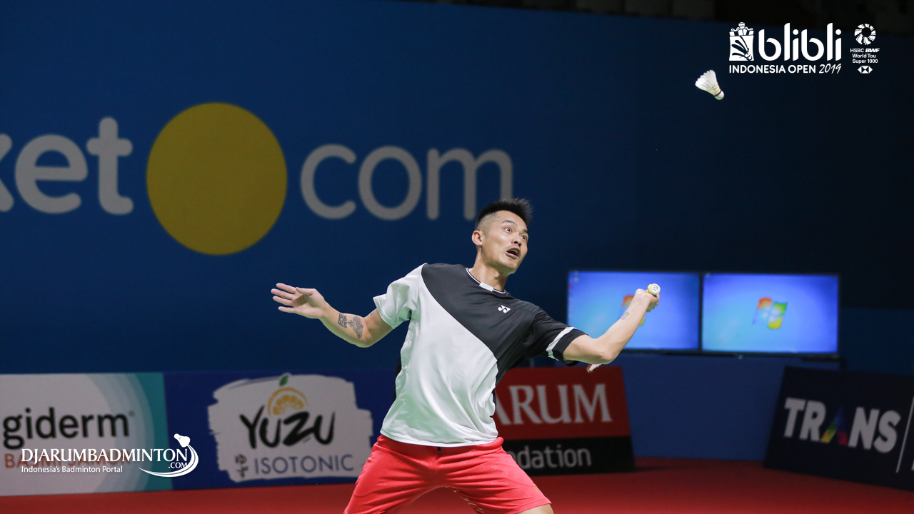 LIN Dan (China) saat melakukan sesi latihan