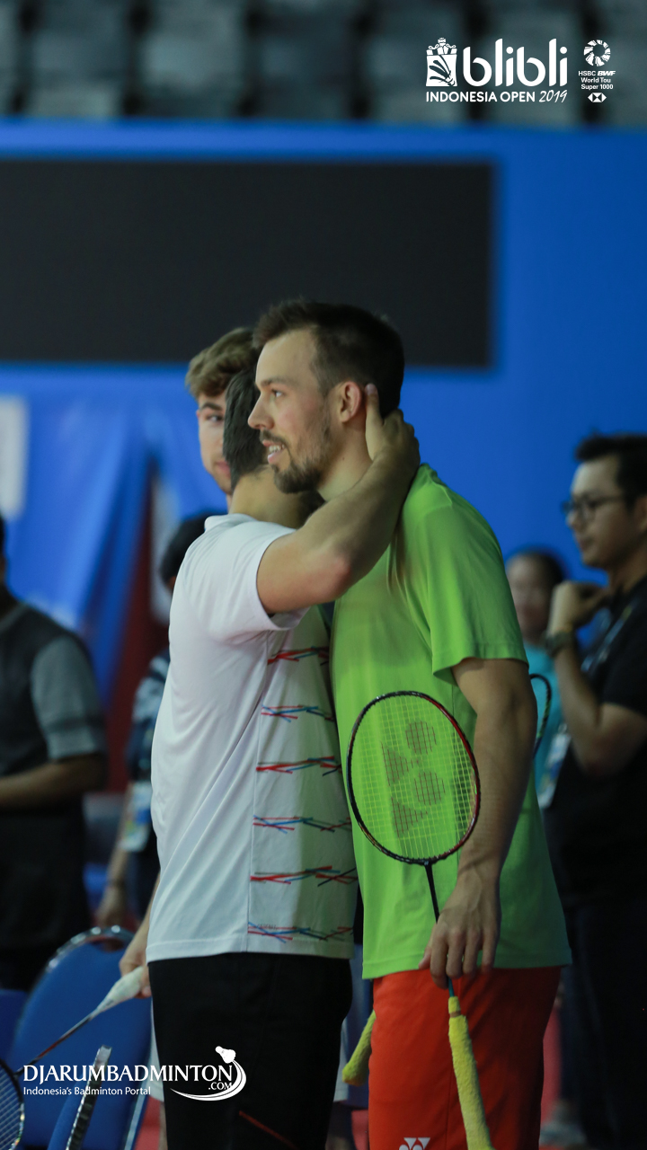Anders ANTONSEN (Denmark) sedang ditangani tim medis