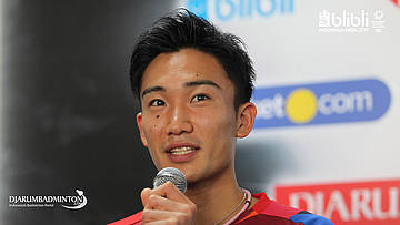 Kento MOMOTA (Japan) saat menjawab pertanyaan di Press Conference Blibli Indonesia 2019