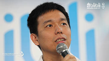 Ekpresi Hendra Setiawan saat Press Conference Blibli Indonesia 2019