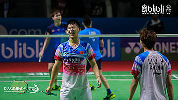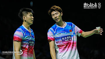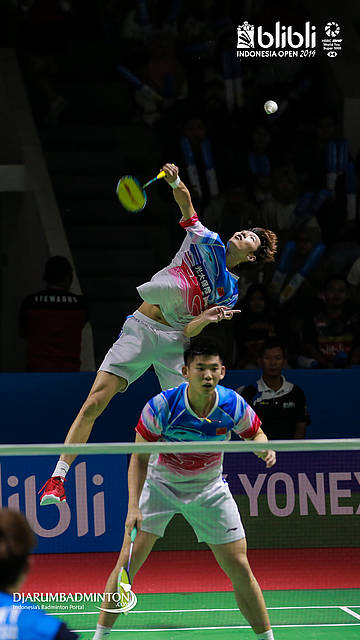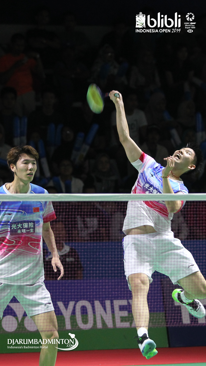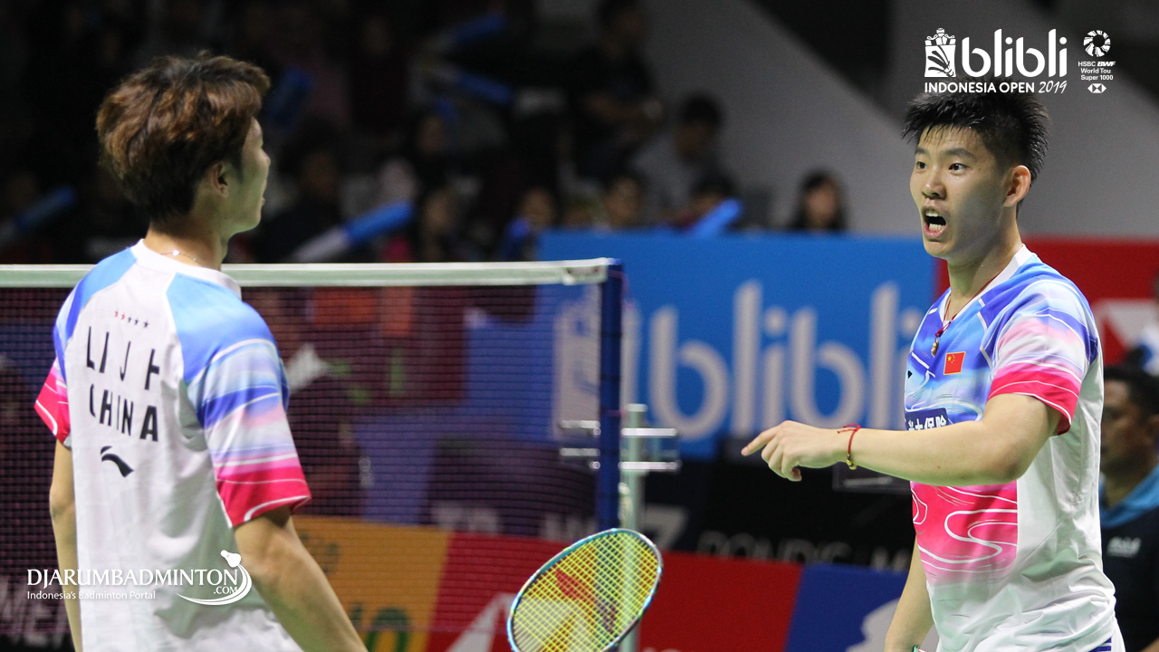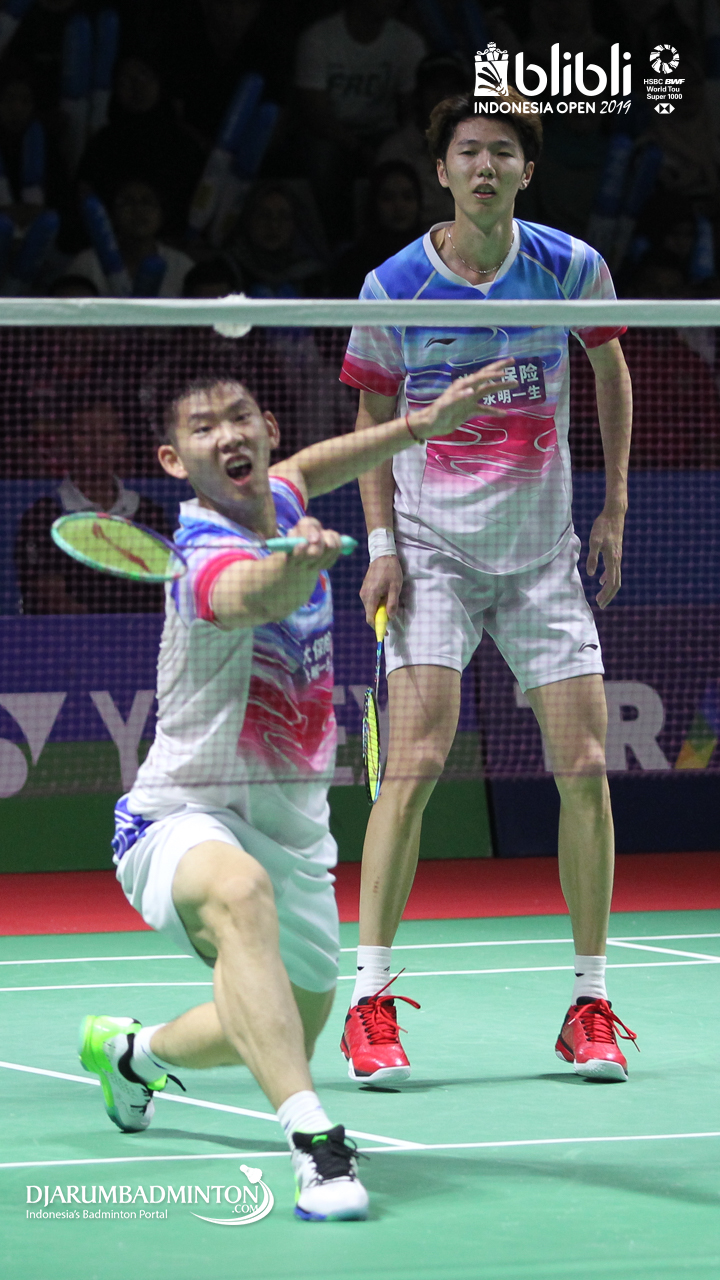 LI Jun Hui, LIU Yu Chen (China) menyambut shuttlecock