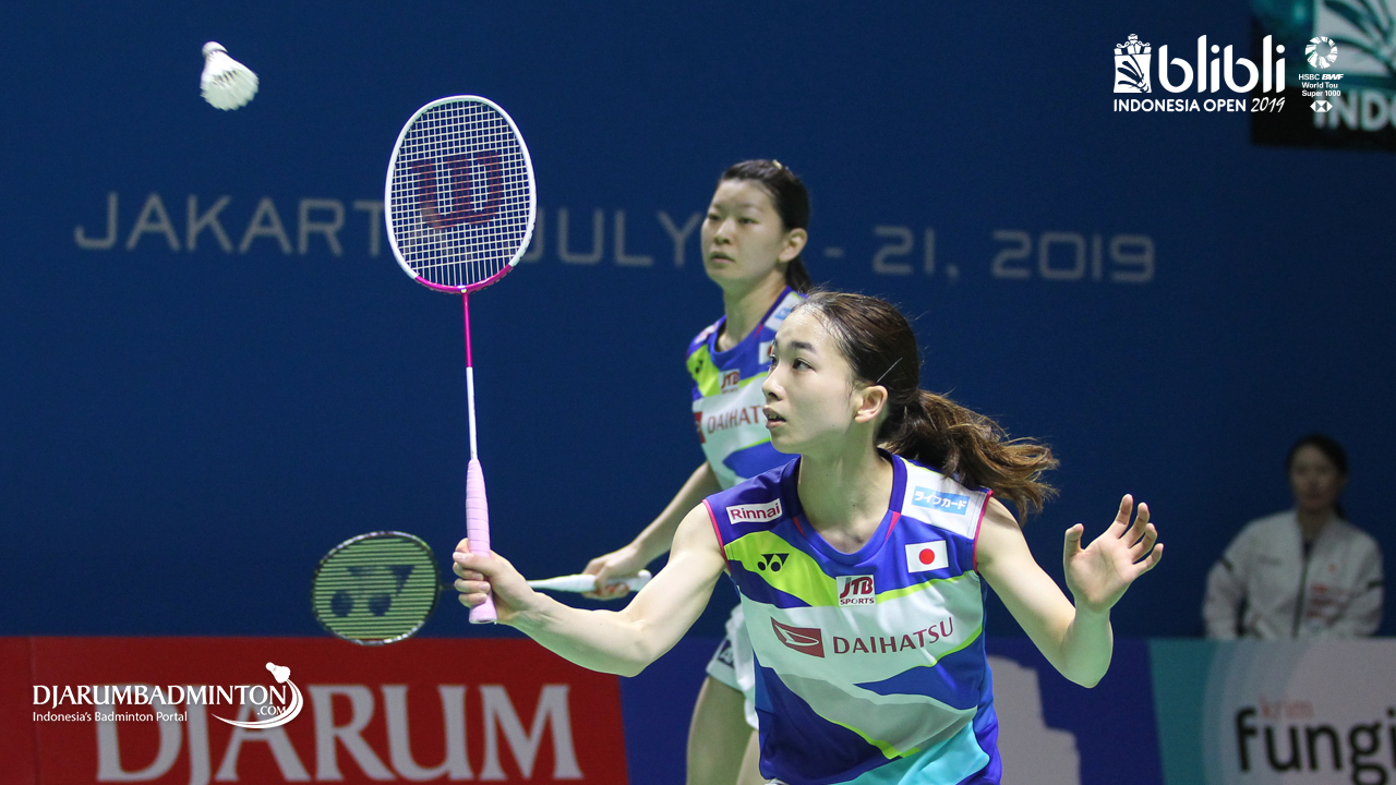 Misaki MATSUTOMO, Ayaka TAKAHASHI (Japan) menyambut serangan