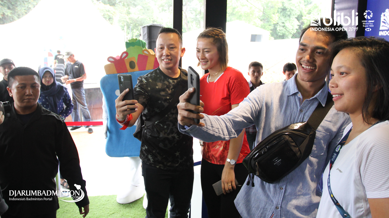 Winny Oktavina KANDOW dan Tontowi AHMAD saat berfoto dengan para penggemar