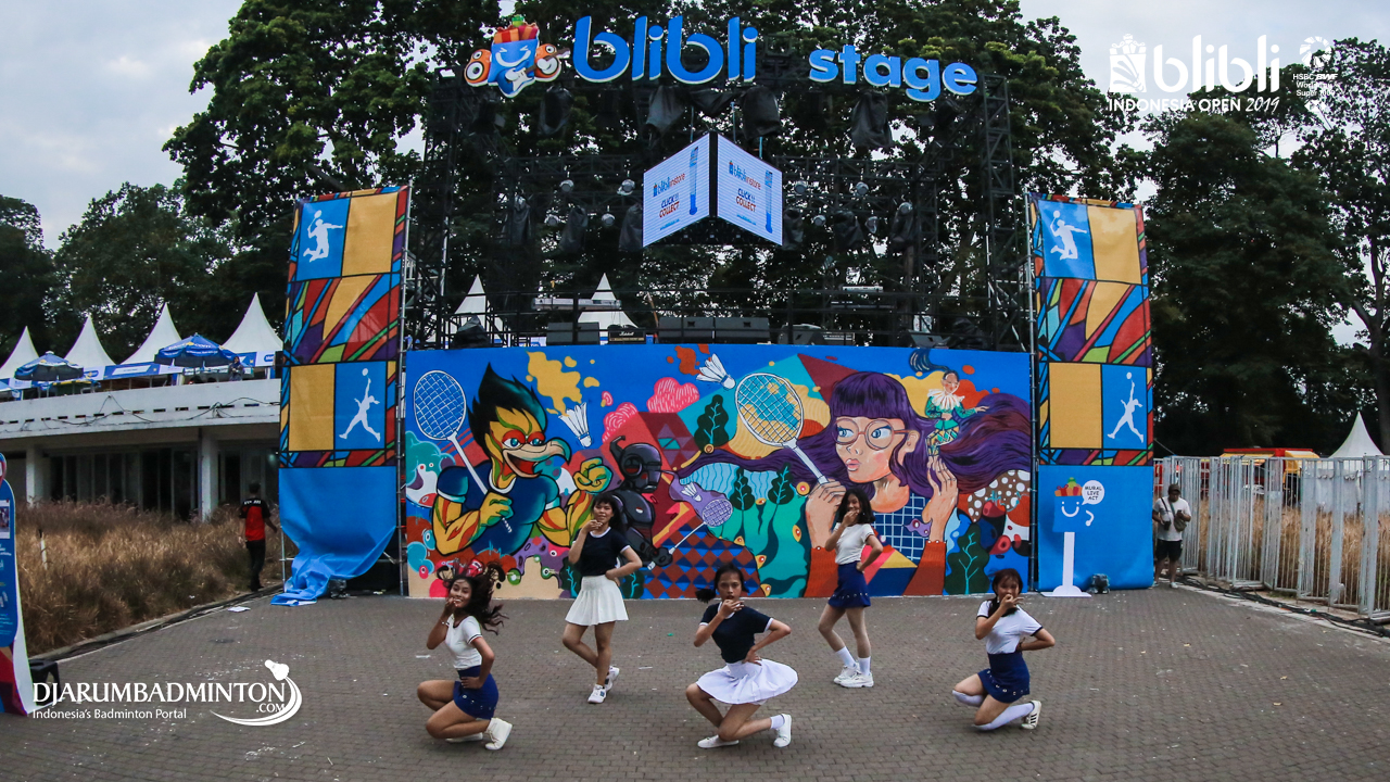 Para anggota pertunjukan yang menghibur di acara Blibli Indonesia Open 2019