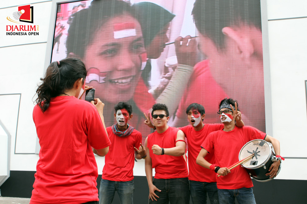 Pengunjung bisa memberikan dukungan kepada pemain favorit mereka yang berlaga di Djarum Indonesia Open 2012.