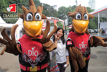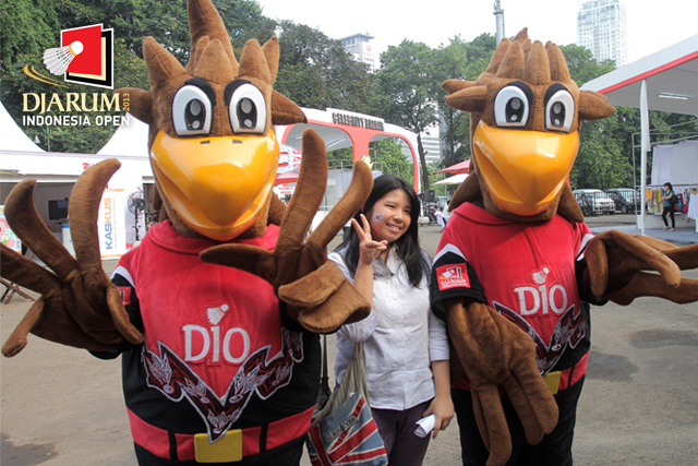 Salah satu pengunjung berfoto bersama maskot DIO.