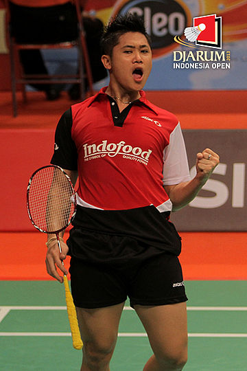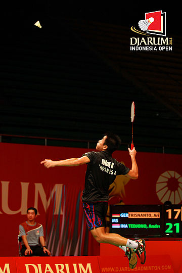 Andre Kurniawan (Indonesia) bersiap melepaskan smash.