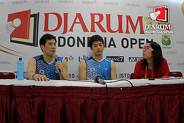 Ko Sung Hyun/Lee Yong Dae (Korea Selatan) saat press conference usai bertanding.