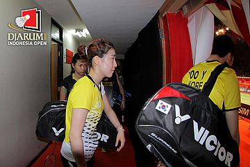 Yoo Yeon Seong/Eom Hye Won (Korea Selatan) saat akan memasuki lapangan pertandingan.