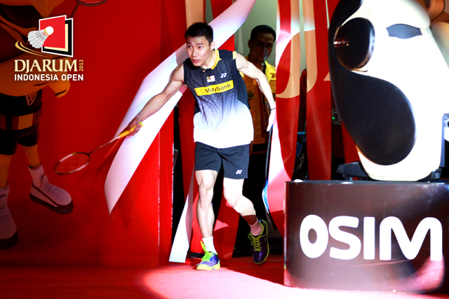 Lee Chong Wei (Malaysia) saat memasuki lapangan pertandingan.