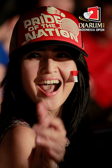 Kadek Devi tampil dengan berbagai atribut untuk mendukung Indonesia.