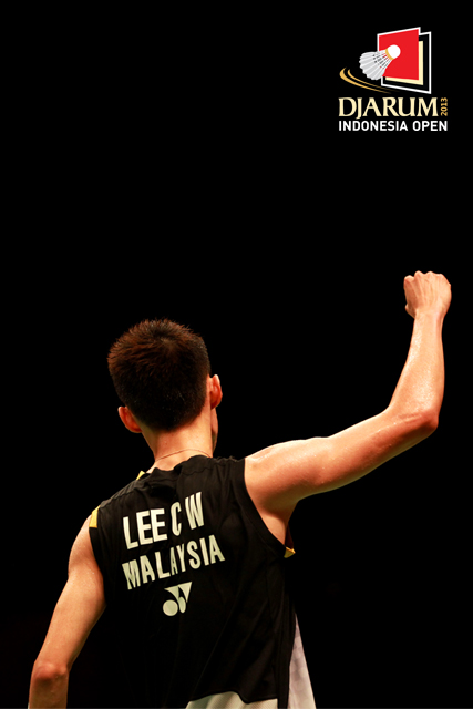 Selebrasi Lee Chong Wei (Malaysia) setelah berhasil mengalahkan Dionysius Hayom Rumbaka (Indonesia) di babak semifinal Djarum Indonesia Open Super Series Premier 2013.