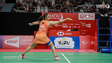 Saina NEHWAL (India) mengembalikan shuttlecock