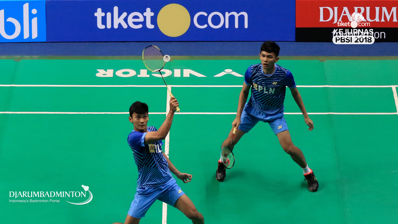 Fajar Alfian+Muhammad Shohibul Fikri (SGS PLN Bandung) Menahan serangan lawan