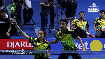 Dejan Ferdinansyah+Tsavanne Bethalia Putri Mertoso (DKI Jakarta) Mengembalikan shuttlecock