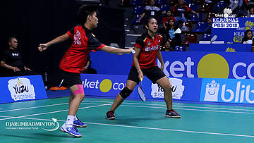 Apriyani Rahayu+Della Destiara Haris (Jaya Raya Jakarta) Mengembalikan shuttlecock