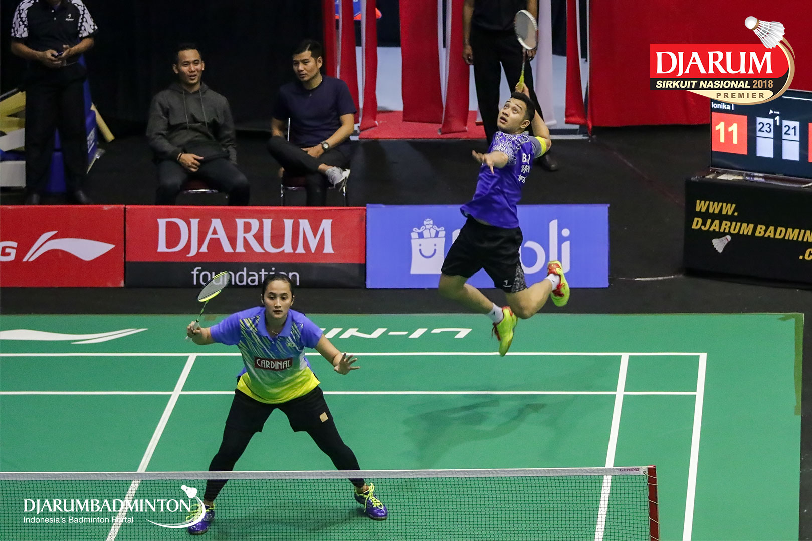Althof Baariq dan Monika Insany (Mutiara Cardinal, Bandung) bersiap melakukan smash