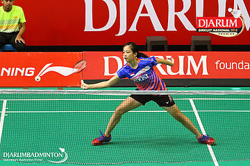 Karen Aprilia (Exist, Jakarta) bersiap melakukan pengembalian