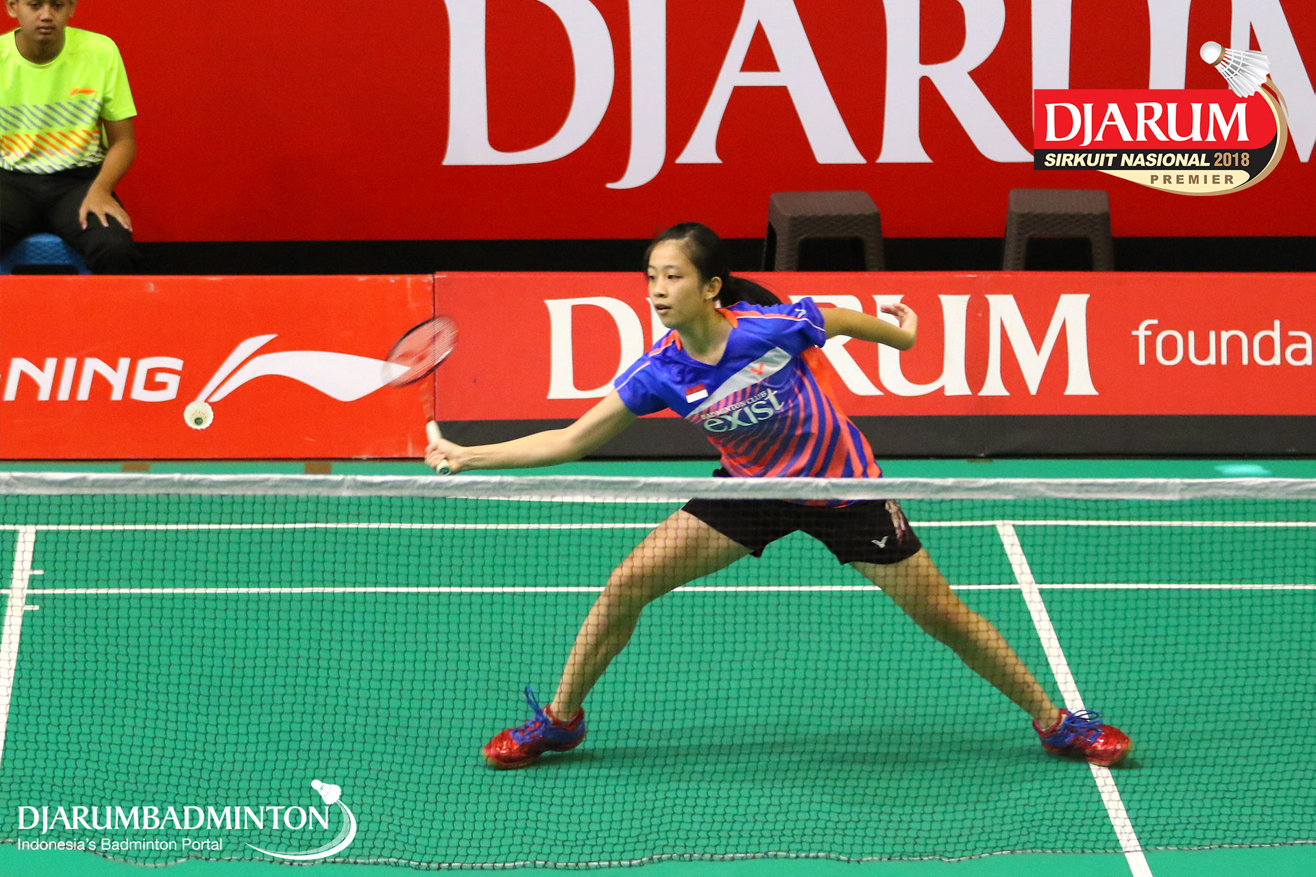 Devita Puti Alifia (Mutiara Cardinal, Bandung) melepaskan serangan