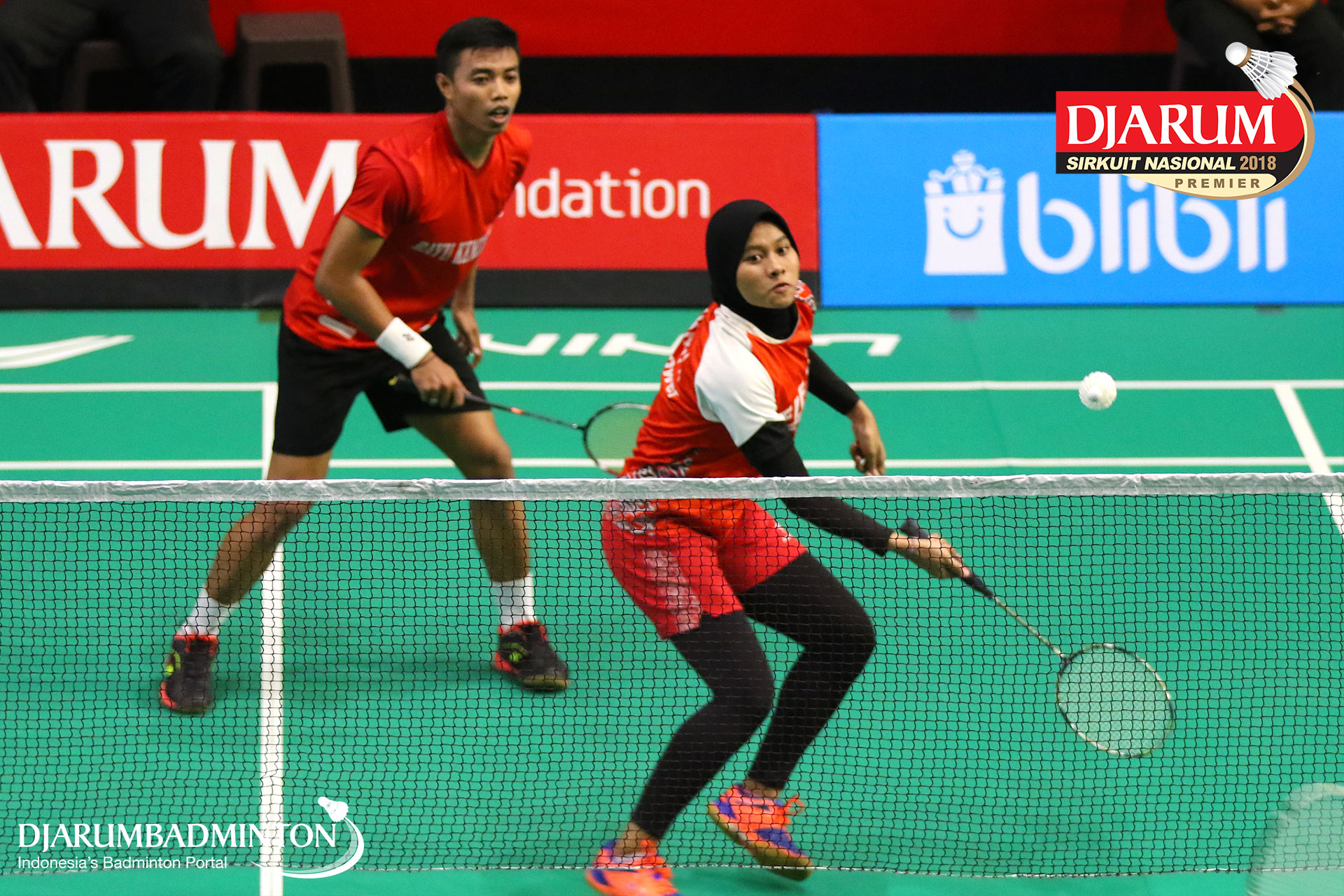 Muchamad Taghjul Arifin Billah/Aisyah Nuraini (Bayu Kencana, Pasuruan+FIFA BC) mengembalikan shuttlecock