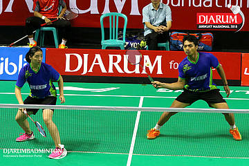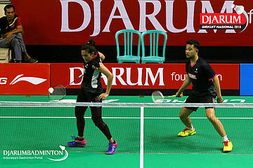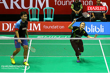 Rizko Asuro/Keshya Nurvita Hanadia (Pertamina Fastron, Jakut+Berkat Abadi, Banjar) menyambut serangan