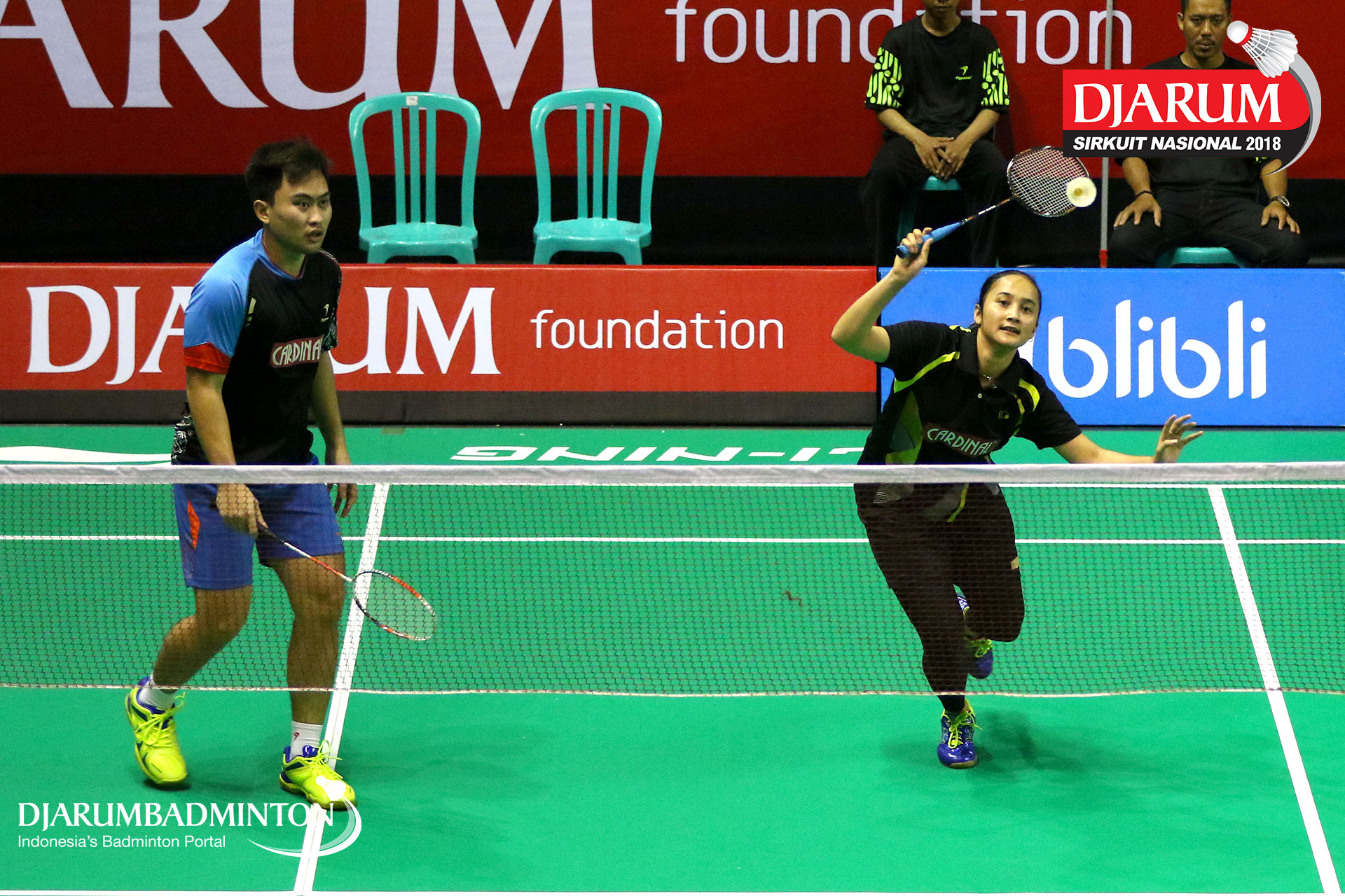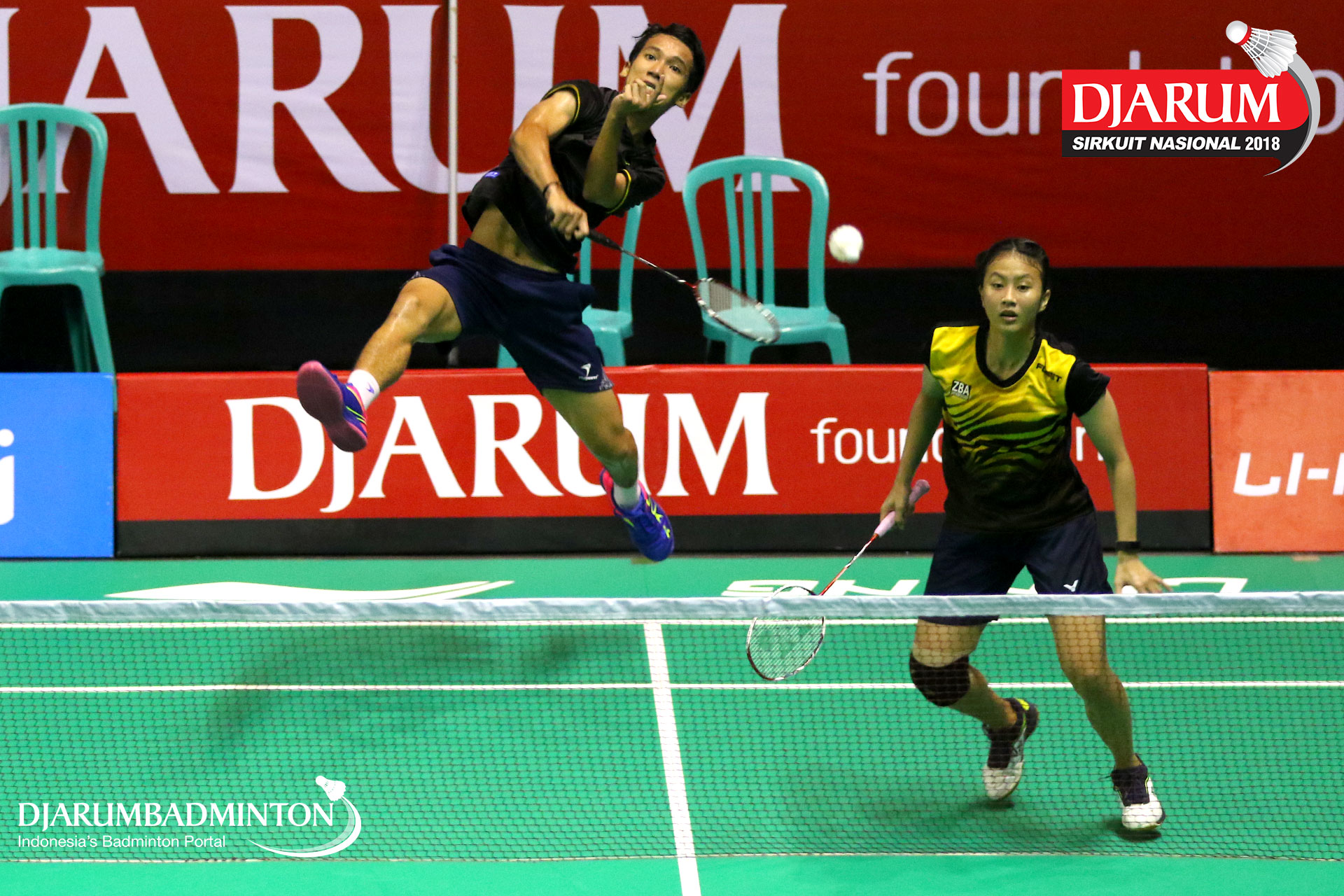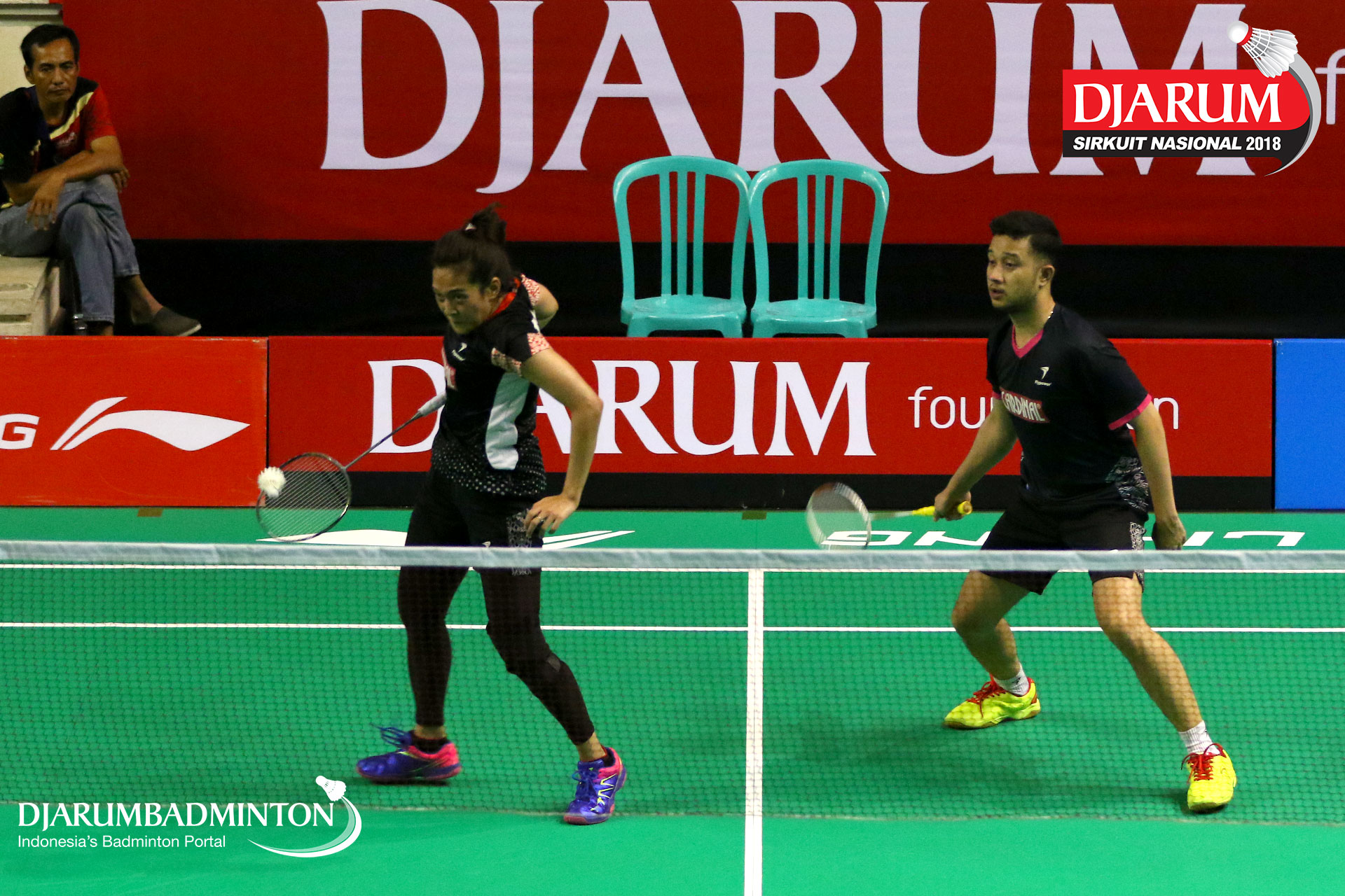 Putra Eka Rhoma/Nadiya Melati (Jaya Raya Jakarta, Jakpus+Pertamina Fastron, Jakut) bersiap menyambut serangan