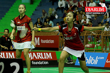 Febby Valencia/Metya Inayah C (Djarum Kudus) Mencoba menggapai shuttlecock