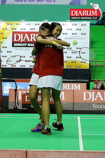 Selebrasi kemenangan Febby Valencia/Metya Inayah C (Djarum Kudus)