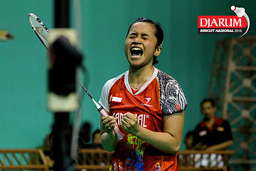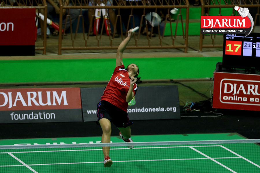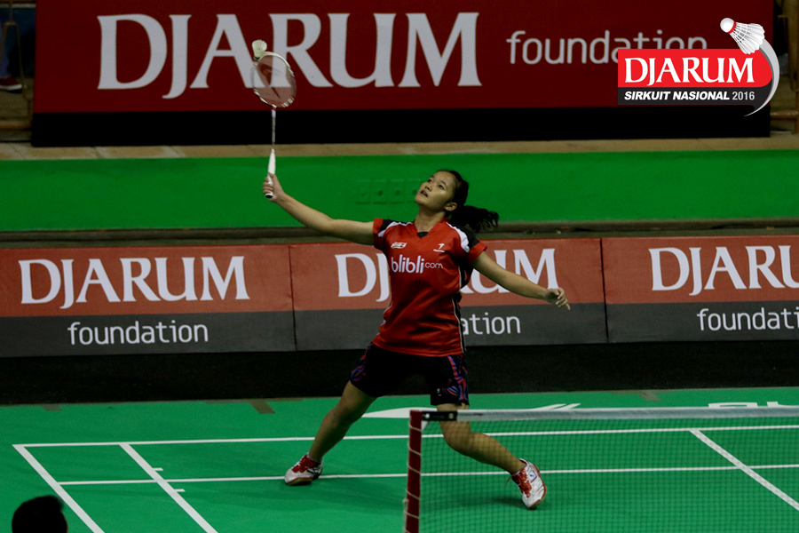 Wulan Cahya Utami (Djarum Kudus) Berusaha menggapai shuttlecock