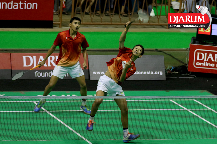 Aldi Efendi/Guntur Tetuko (PSUD Telkom) Berusaha menggapai shuttlecock