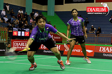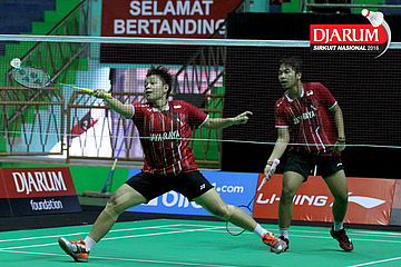 Bernadus Bagas K/Indah Cahya Sari (Djarum Kudus) Mengembalikan shuttlecock