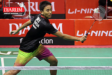 Erick Eriawan (Djarum Kudus) Mengembalikan Shuttlecock.