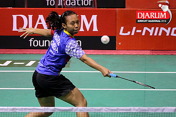 Winda Puji (Fifa Badminton) Mengembalikan Shuttlecock.