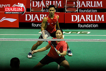 Rizko Asuro/Nadiya Melati (Pertamina Fastron) Mengembalikan Shuttlecock