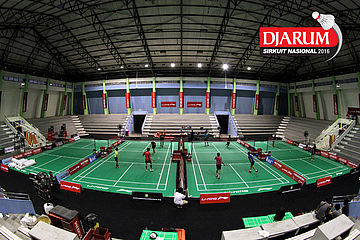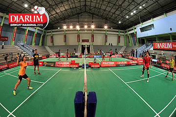 Suasana persiapan Djarum Sirkuit Nasional Li-Ning 2016 Kalimantan Selatan Open di GOR H.M Hasanudin, Banjarmasin.