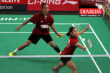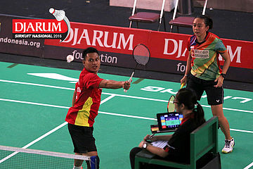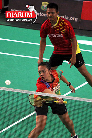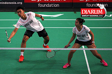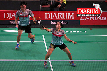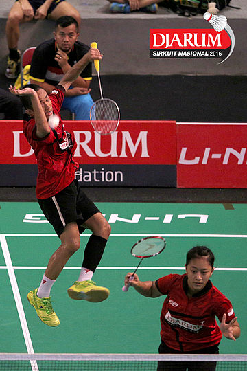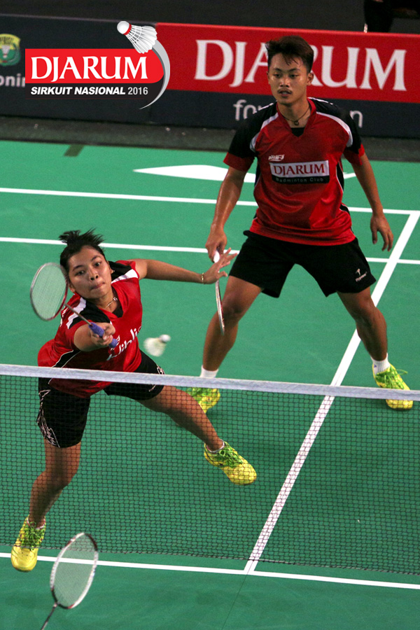 Akbar Bintang/Ristya Ayu (Djarum Kudus) menyambar pengembalian tanggung