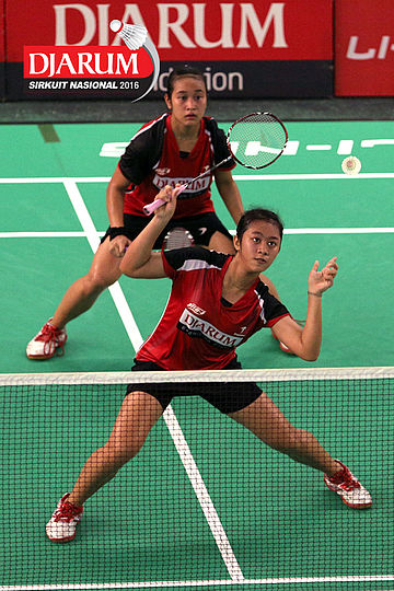 Ririn Amelia/Ristya Ayu (Djarum Kudus) menghadang serangan