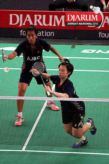 Adefriet Ardiana/Anna Cheong (AJBC) menyambut serve