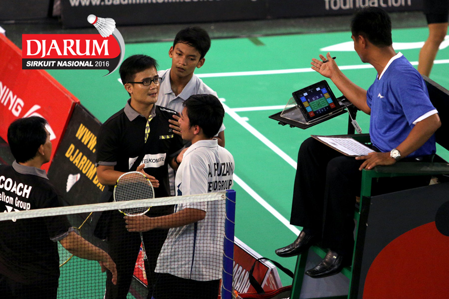 Ofisial (Pusdiklat Telkom Jabar) melakukan protes kepada umpire