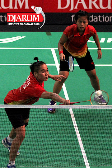 Dian Fitriani/Nadya Melati (Pertamina Fastron) menyambut serve