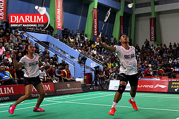 Haffiz Nur Adila/Pramudya Kusumawardana (Djarum Kudus) menyambut pengembalian