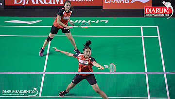Salli Lin+Sang Ayu Putu Kharisma Maharani (PB Djarum, Kudus) melepaskan serangan