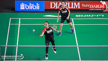 Salli Lin+Sang Ayu Putu Kharisma Maharani (PB Djarum, Kudus) menyambar pengembalian