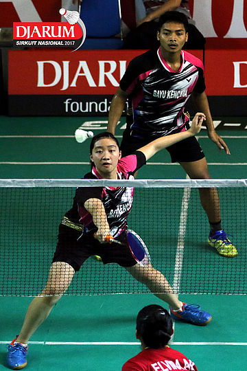 Bryan Sydney/Dea Putri (Tangkas Intiland) Mengembalikan Shuttlecock