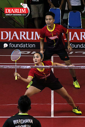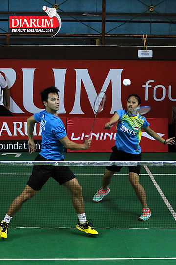 Fernando Kurniawan/Dian Fitriani (Djarum Kudus/Pertamina Fastron) Mengembalikan Shuttlecock