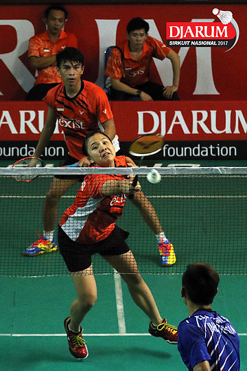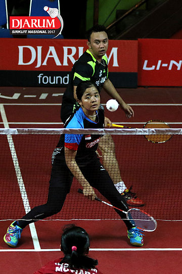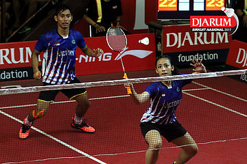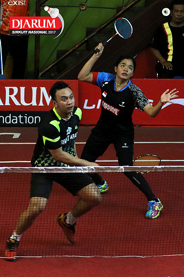 Trikusuma Wardhana/Suci Rizki Andini (Exist/Mutiara Cardinal) Mengembalikan Shuttlecock