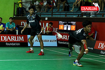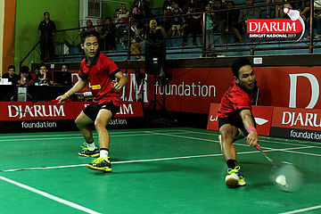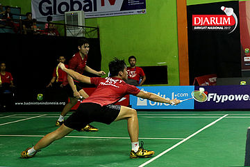 M Rizki Adam/Raynald Tangguh H (CWIBC) Berusaha Menggapai Shuttlecock